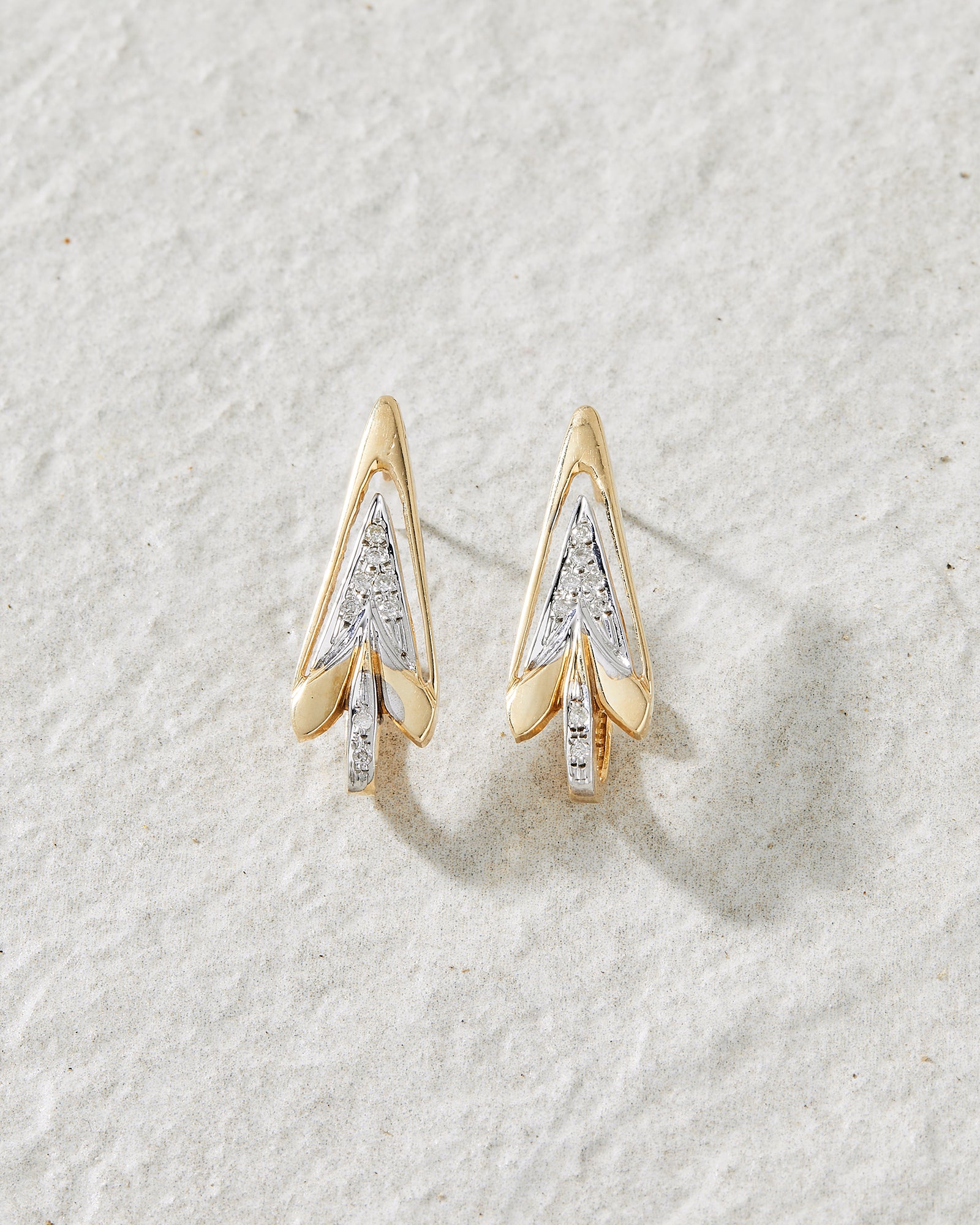 14k Yellow and white gold diamond pave J-hoop arrow earrings